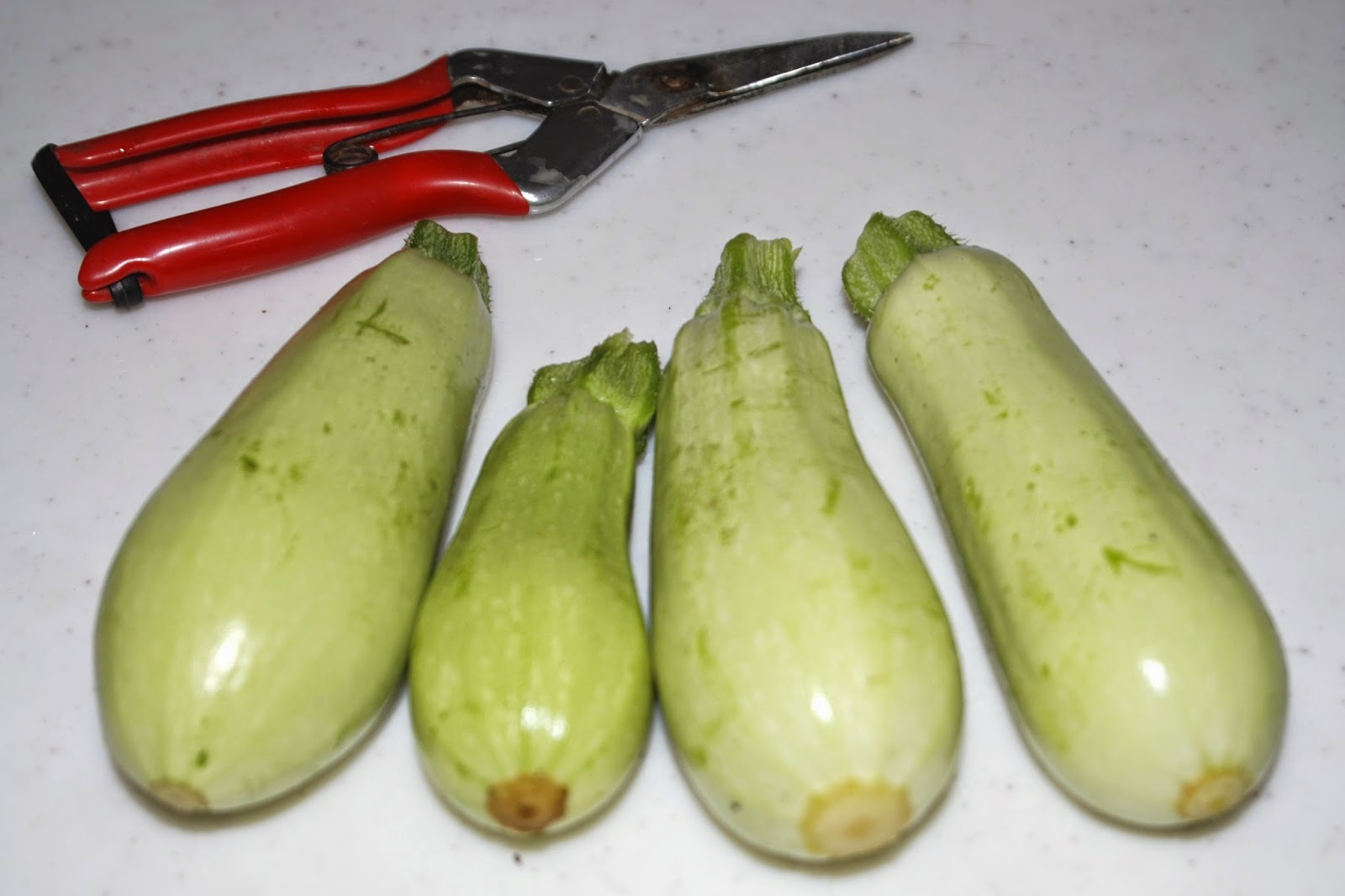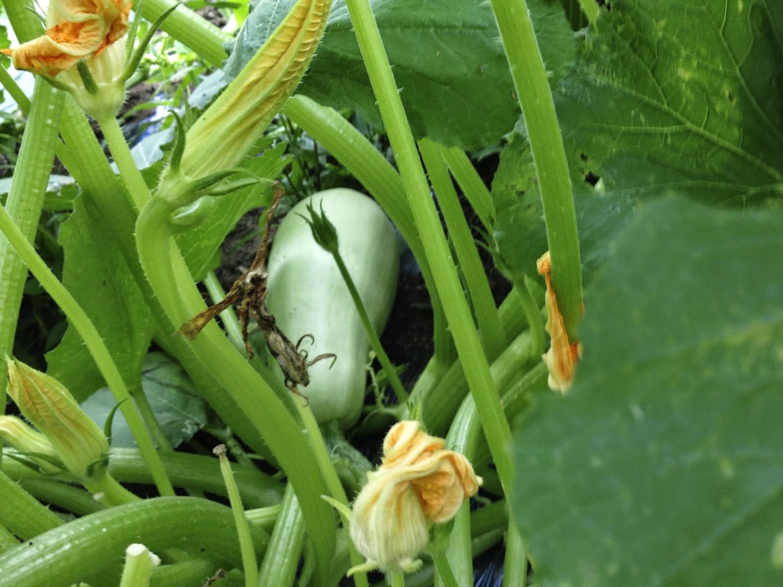 今日、カボチャの初収穫の報告をしたが、それよりびっくりしたのが白ズッキーニの大収穫だった。