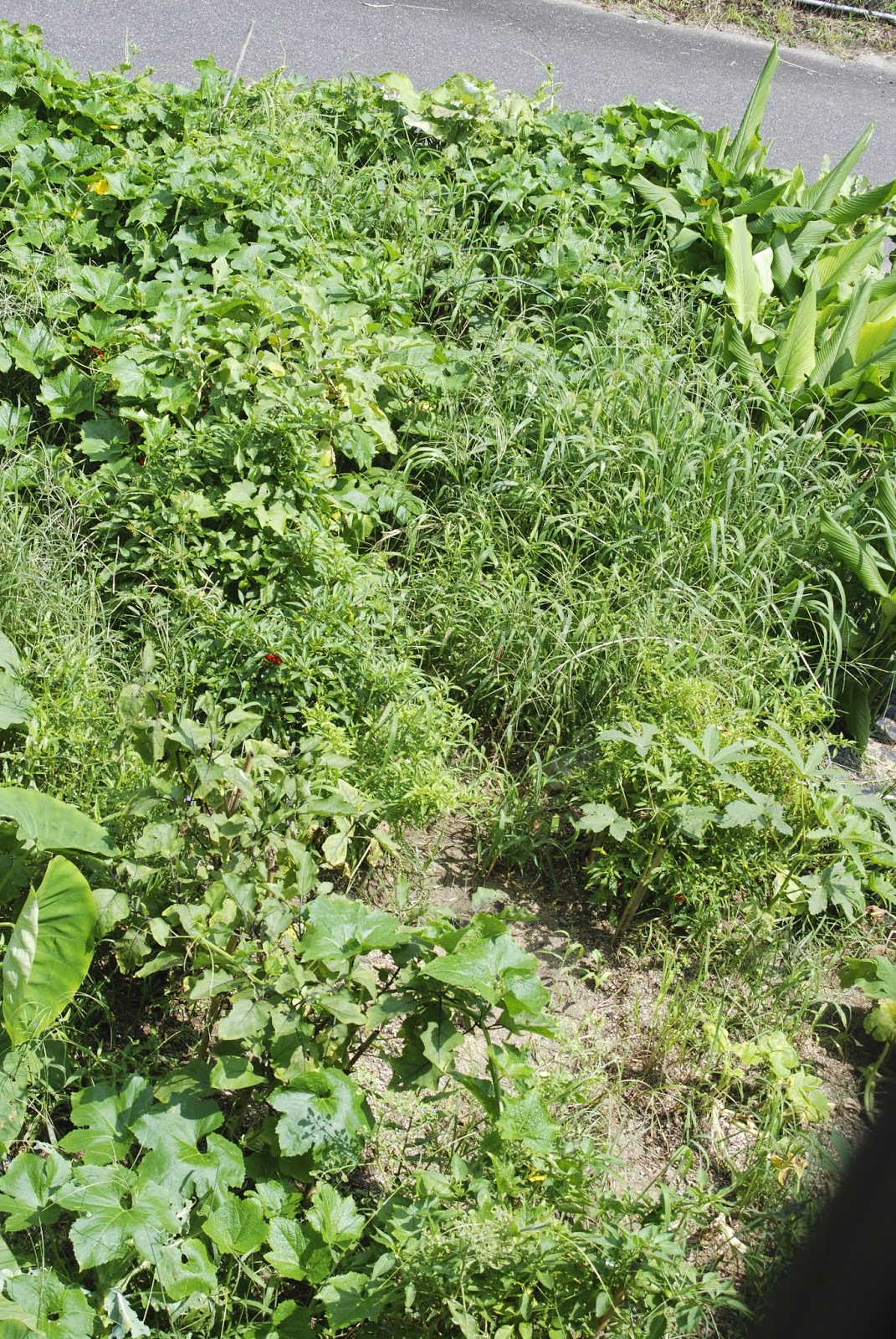 雑草を片付けた畝はそのうち、ジャガイモなどの秋冬野菜の畝に変わっていくはずだ。