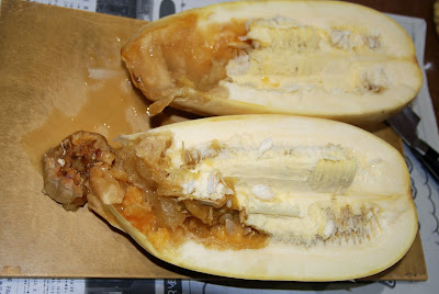 腐れ始めた白ズッキーニを割ってみた。
