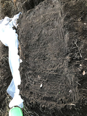 種を蒔いた後の管理が大変なのだが、絶対にうまくいくと信じて試みた方法は、鉄パイプ1本分の長さの小さな畝に種まきをし、周囲を完全に土で覆う方法。