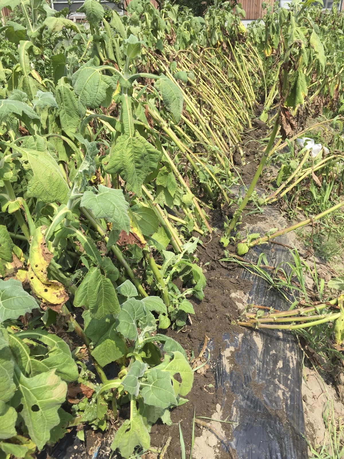 しかし、そんな小さな種芋でも、今年の苗は順調に育ち、6月末には文句ない状態に育っていた。