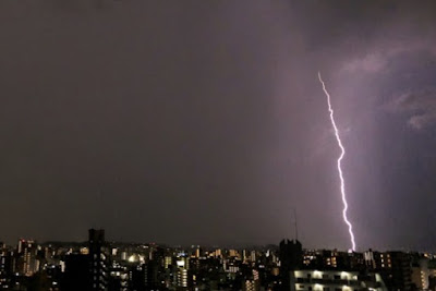 | 花火が打ち上がる直前に華々しく落ちていた雷。 |