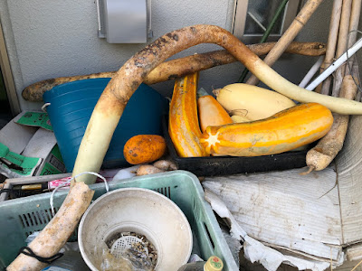 ところで、上の写真では種取り目的のズッキーニが並んでいるが、我が家でのズッキーニは春に種をまき、5月から6月にかけて収穫する。