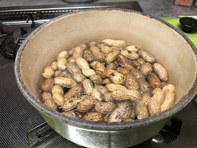そんな落花生を35分間塩を加えて湯掻いてみた。