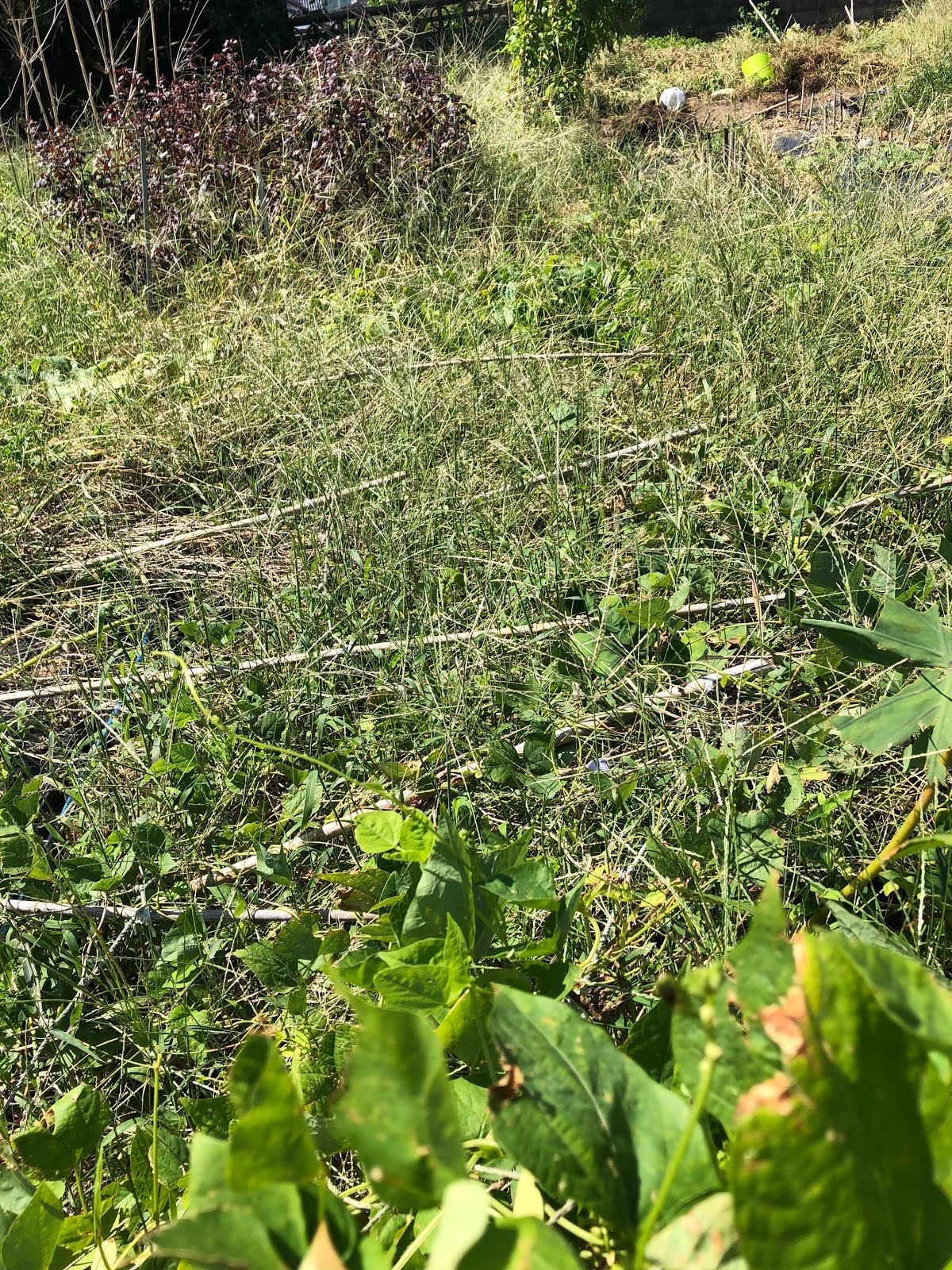 黒マルチで太陽熱マルチの代用をさせた効果はあったみたいで、この畝では虫被害だけでなく、雑草もかなり予防出来ている。