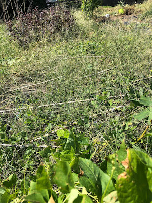 そこで、今年は夏の間、黒マルチで透明マルチならぬ太陽熱マルチの代用をしていた場所があったので、台風が来る前にそんな黒マルチを剥いで二つの畝を作り種まきをした。