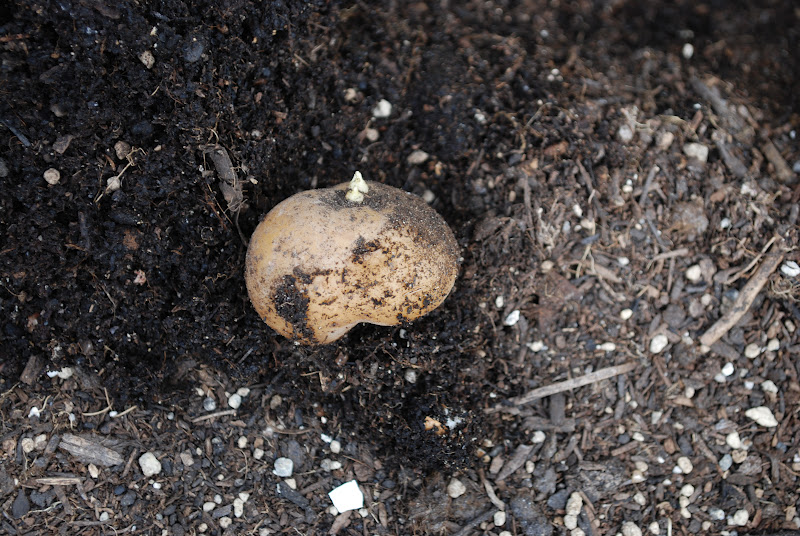 それから1週間経った今日、やっとプランターからジャガイモの芽が出ているのを見つけた。良かった!