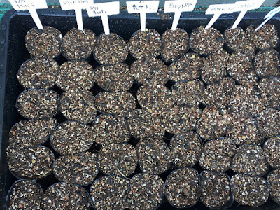 | 左から3列目が Beetrootの種。 種まき適期より、少し早めの種まきをでうまく苗を育てるのは結構難しい。 |