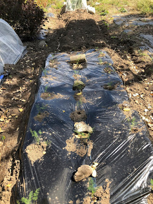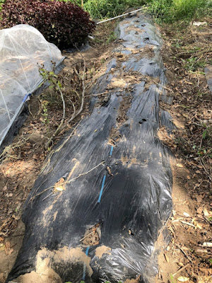 で、今ではその畝は、マルチを剥いで、畝を耕し直し、半分をディルの小さな苗を植えた。