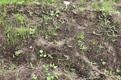 幾つかの畝では、さっそく雑草に悩まされている。