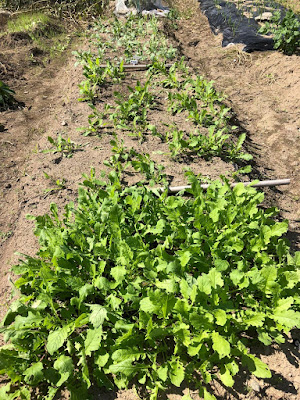 手前の葉大根は、1週間ほど前から間引き収穫を続けている。