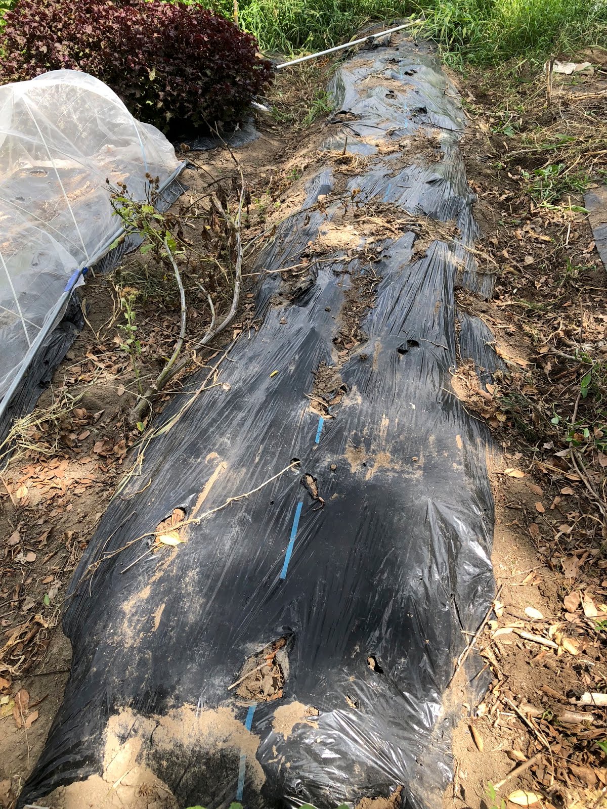 だから、雑草が少しでも生えないように我が家の野菜作りでは、マルチをよく使っているのだが。。。