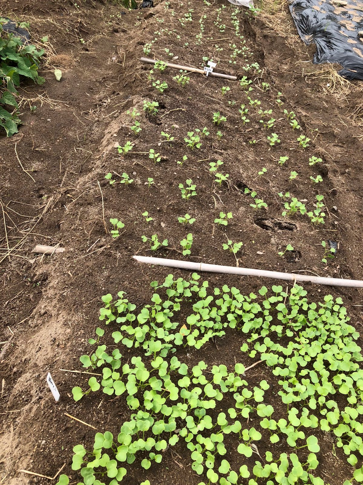 マルチをかけて失敗した大根があったので、その後幾つかの畝ではマルチをかけないで種を蒔いた。