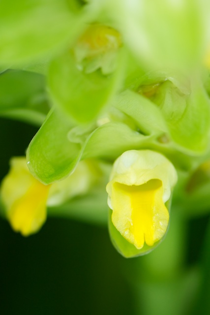 実はウコンの花弁と呼べるのは、花の下の方にある小さな黄色い筒状のもので、