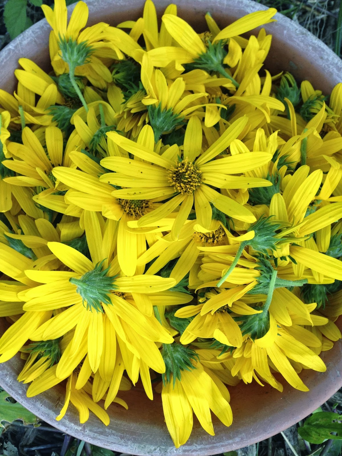 そこで、今年もキクイモの花を熱湯に3分程湯通しをして、ざるの上で乾燥だ。