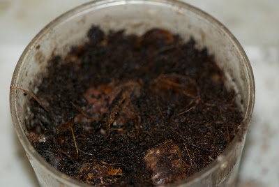 | 実験設定時の写真(昨年12月14日)。 観察小屋は小さめだったが赤ちゃんミミズ30匹ならこのサイズで十分と思われた。 |