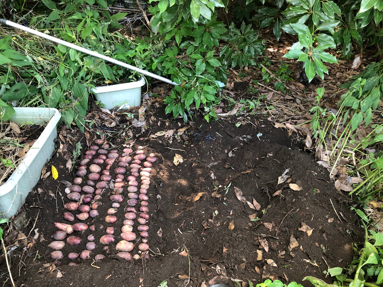 ただし、今年は空いたプランターがないので、種芋を地植えすることにした。