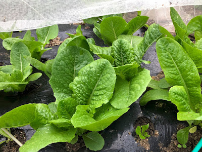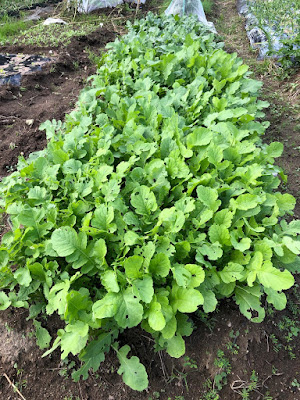 | これは防虫ネットの中で移植用に育苗していた場所。 移植は終わり、ここに密集した苗は間引き収穫となった。 |