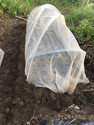 | 芽が出たら防虫ネットをかけるつもりだ。 そして、ある程度育った苗を畝に移植予定だ。 |