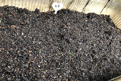 | 芽が出たら防虫ネットをかけるつもりだ。 そして、ある程度育った苗を畝に移植予定だ。 |