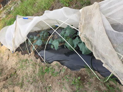 それらの苗が育っている、防虫ネットを掛けた畝はここ。