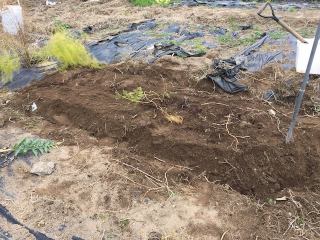 さて、昨年のこの時期、土嚢袋で育てていた2〜3年目のアスパラを第2菜園の畝に移植した。