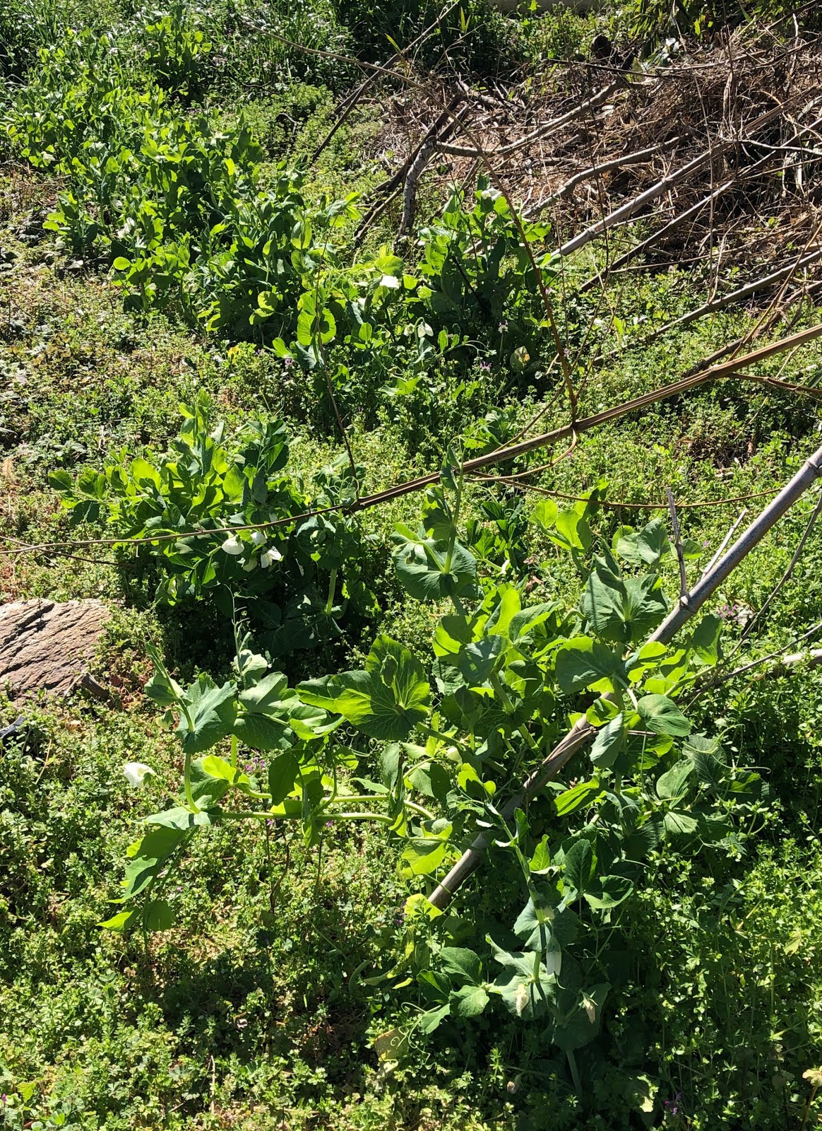 放任栽培の中で、まだ出遅れ感があるのがグリーンピースで、今日は雑草の中にほとんど隠れているて写真にしなかった。