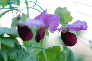 | 先日紹介したが、この赤い花が咲いているのは大きな絹さやが出来るという苗。 大きな実がどんな実なのか?収穫できる日を心待ちにしている。 |