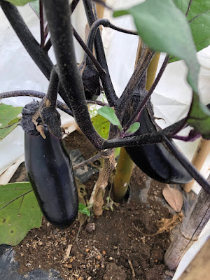 夏野菜ではトマト、ピーマンはもう少し先になりそうだが、一秋先にナスが収穫出来そうになっている。