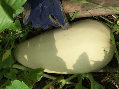 ということで、この白ズッキーニはもうしばらく畑に置いたままにすることにした。
