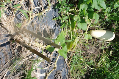 この白ズッキーニも茎の根元はもう枯れていたが、実が付いているところから1mくらいの茎はまだしっかりしていた。