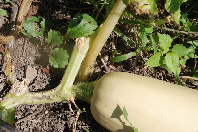 この白ズッキーニも茎の根元はもう枯れていたが、実が付いているところから1mくらいの茎はまだしっかりしていた。