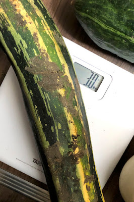 今年はズッキーニが6月中大豊作だったが、雨が少なかったので、収穫忘れのズッキーニも置いていたらこんなに大きくなったのだろう