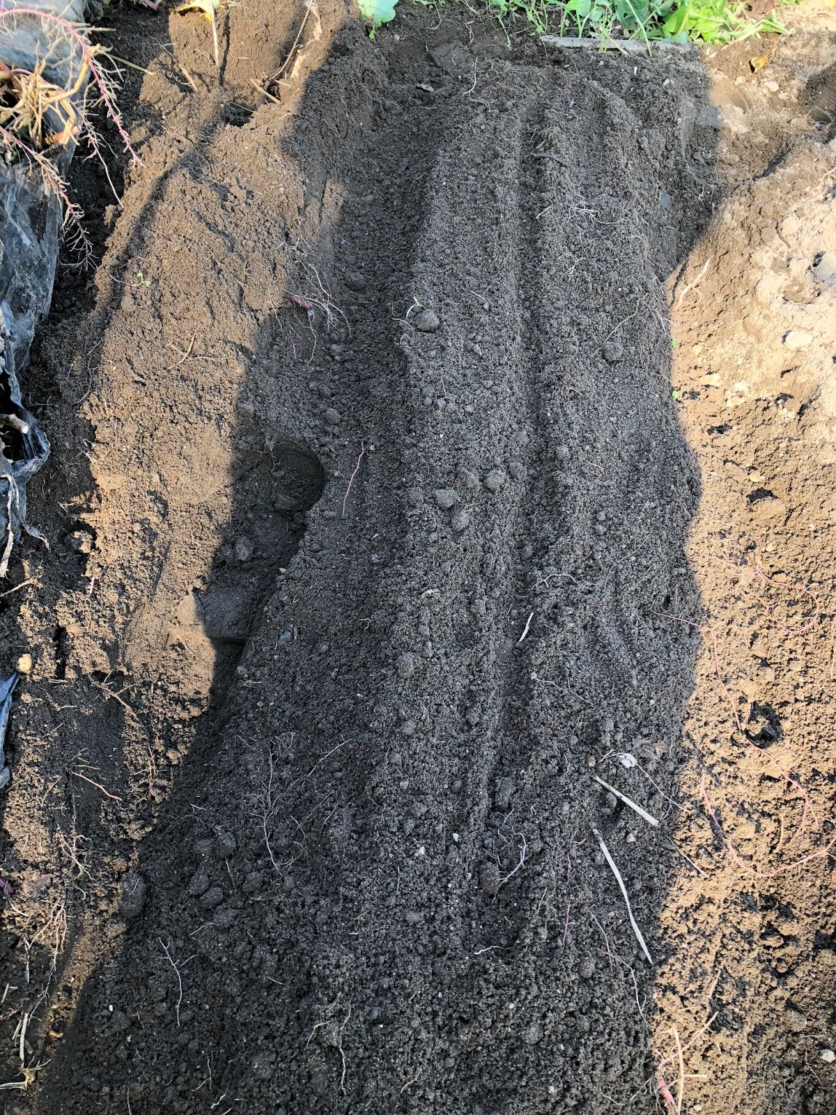 | サツマイモの収穫後に、1列のみ筋蒔きしておいた。 |