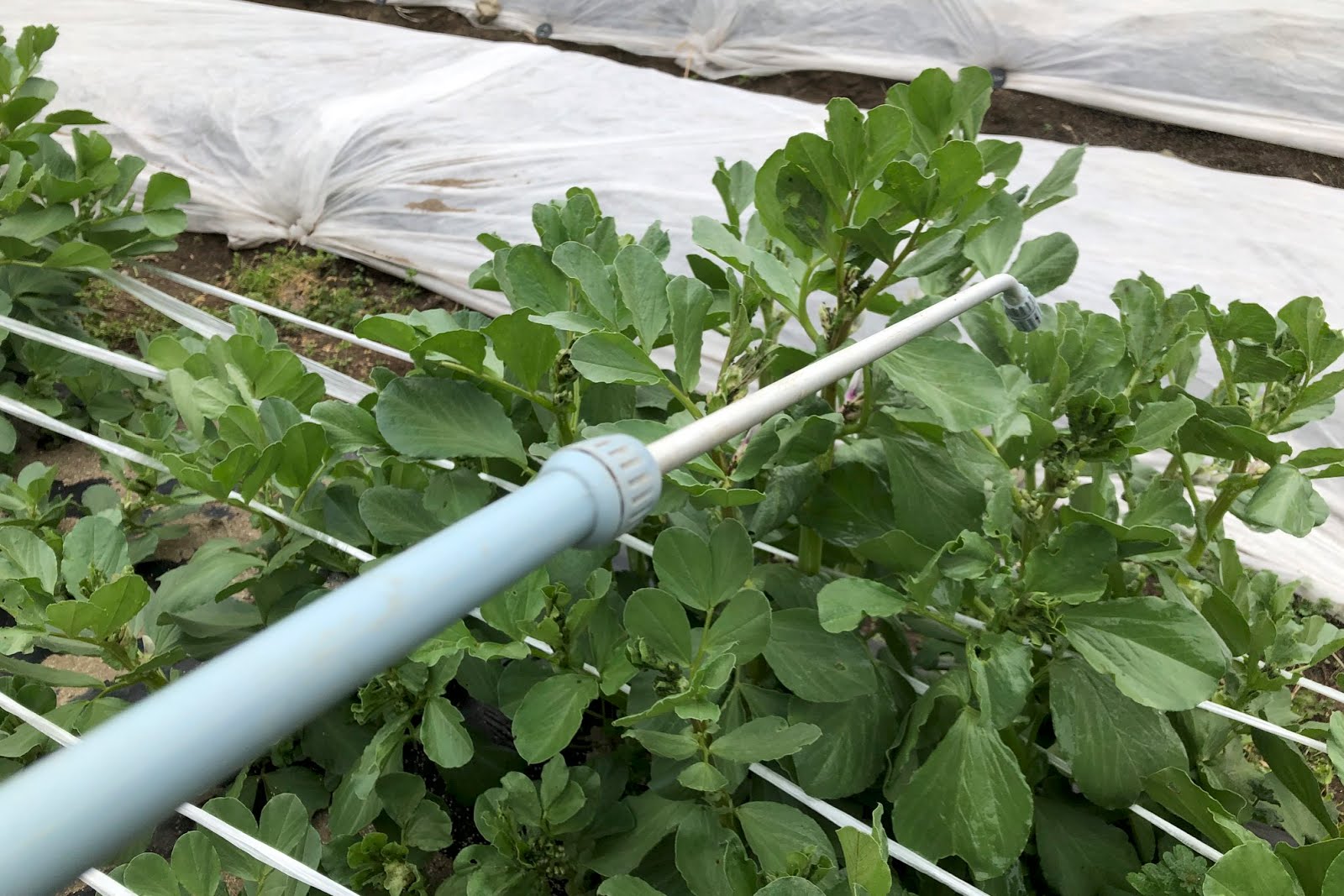 こんな感じでほとんどすべての苗についていたアブラムシに対して、しっかり噴霧した。