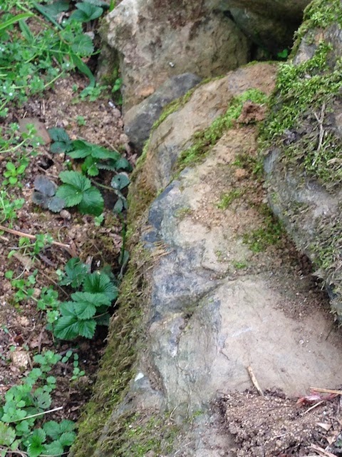 こちらは先日果樹園の石垣のところに植えたワイルドストロベリーの花。