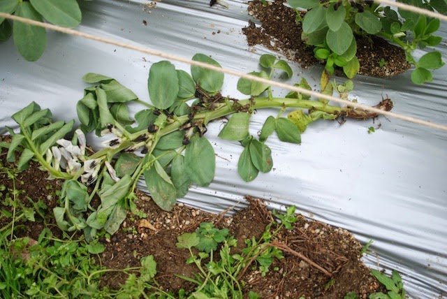 さて、先日空豆にアブラムシが付いていたが、トウガラシスプレー効果で激減した。
