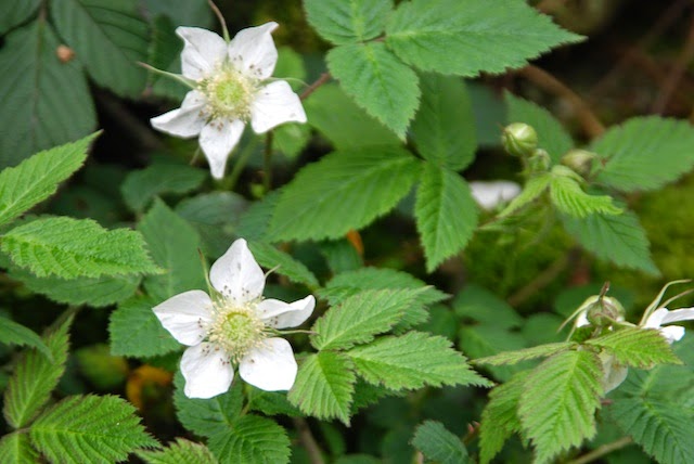野バラとイチゴは同じバラ科で、花も葉っぱもそっくりだ。