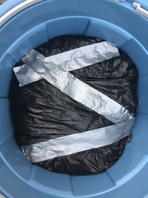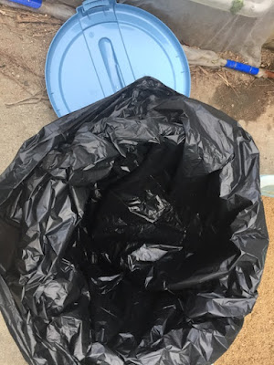 そして今回は、より空気に触れにくいように、ポリバケツの中に大きなビニール袋を入れ、その中に、ボカシ肥料の元を入れた。