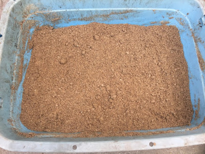 | 教えられた通り、水分調整で手で握ると塊が出来る程度になった。 これで、ボカシ肥料の元は出来たと思う。 |