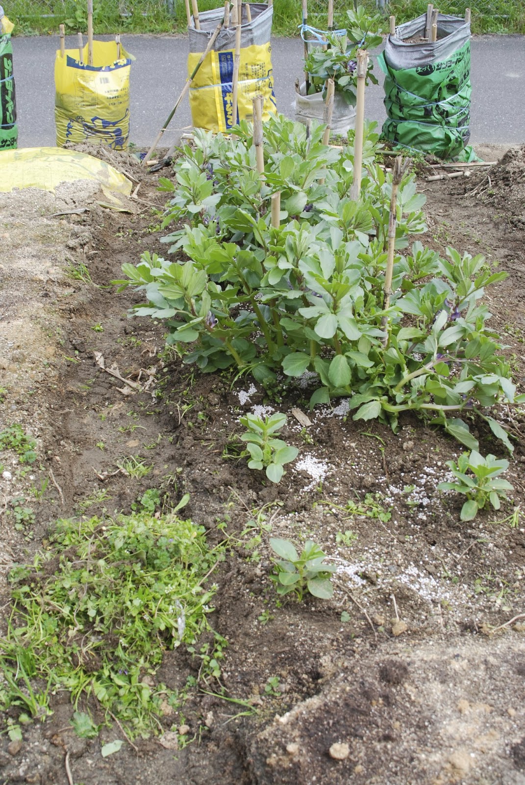 去年はこの後アブラムシが大量発生して、ほとんど空豆の苗全体がアブラムシの餌になっていた。