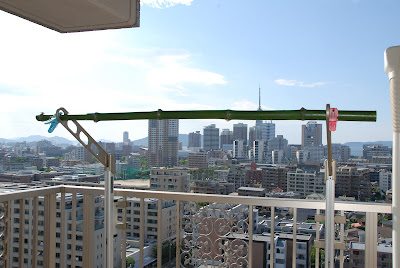 上の写真は右が塩害にやられガムテープで補強していた物干し竿。