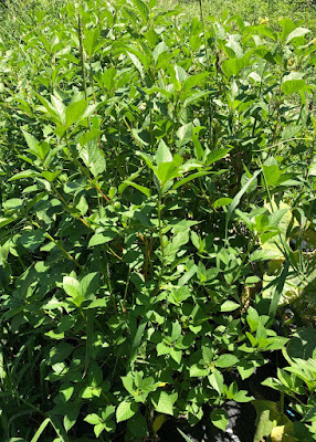 今日同じ場所を見てみると、モロヘイヤはいつでも収穫できる状態に育っていた。