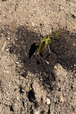 | ここには確実に芽がでるだろうと思った種芋を植えていた。 それでも100%芽出ししてくれると嬉しい。 |