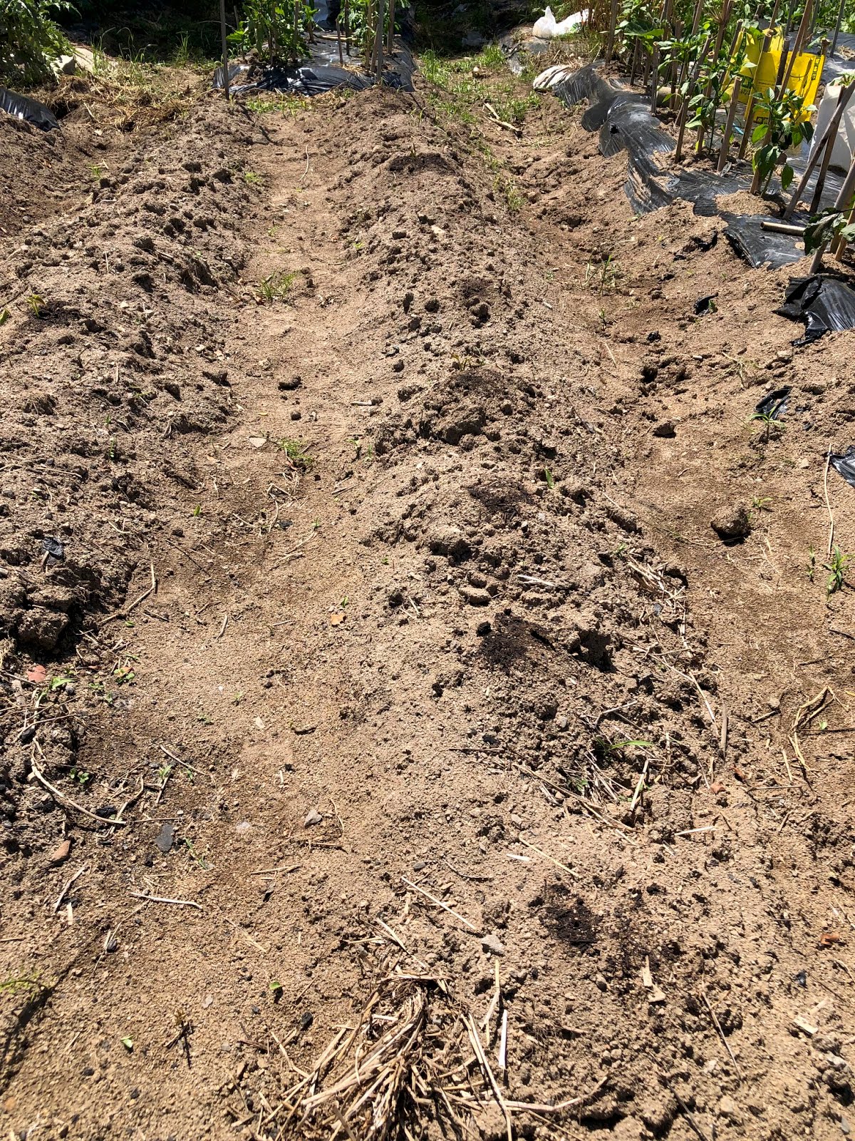 | ここには確実に芽がでるだろうと思った種芋を植えていた。 それでも100%芽出ししてくれると嬉しい。 |