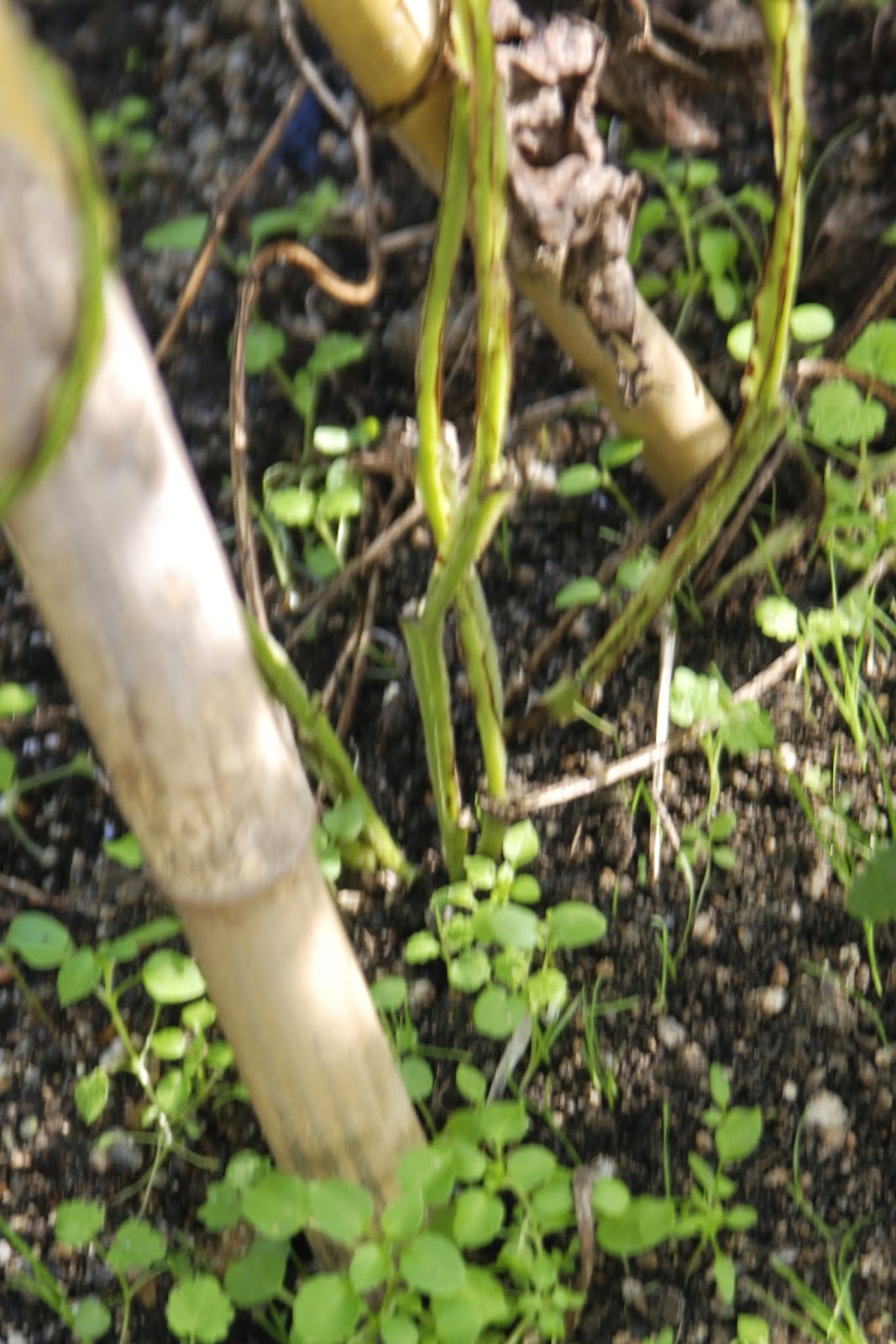 | この苗も茎は細い。それでも上のB区画の茎と大差ない。 それでBの区画と同じくらいの芋を期待した。 |