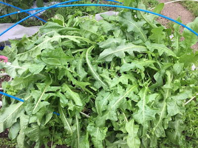 | 葉の長さは50cmくらいに育っているリーフチコリー。 もうしばらくは、収穫出来そうなので貴重な葉っぱ野菜だ。 |