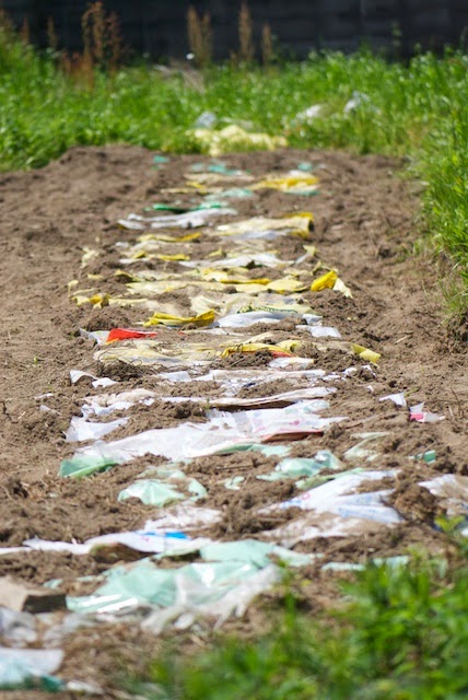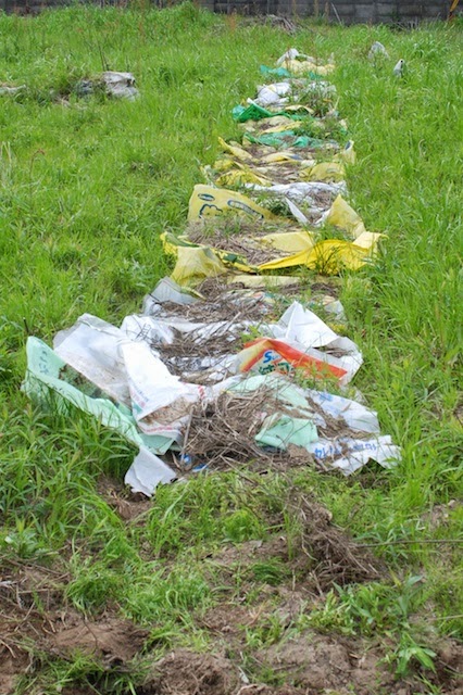 | 種を植えるときは、ビニールの下やその周囲も掘り起こして雑草の根を外した。 |