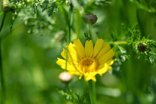 | 植え時が遅かったためか、冬の鍋料理には間に合わなかったシュンギク。 それでも春先から時々美味しく頂いた。 |