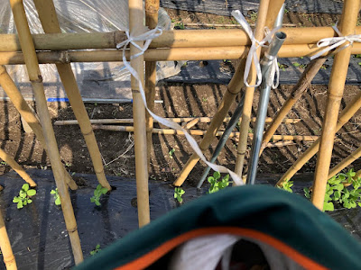 ところで、竹を固定するのはビニール紐なのだが、この作業はドラえもんポケットが付いたジャケットを着ていると便利だ。